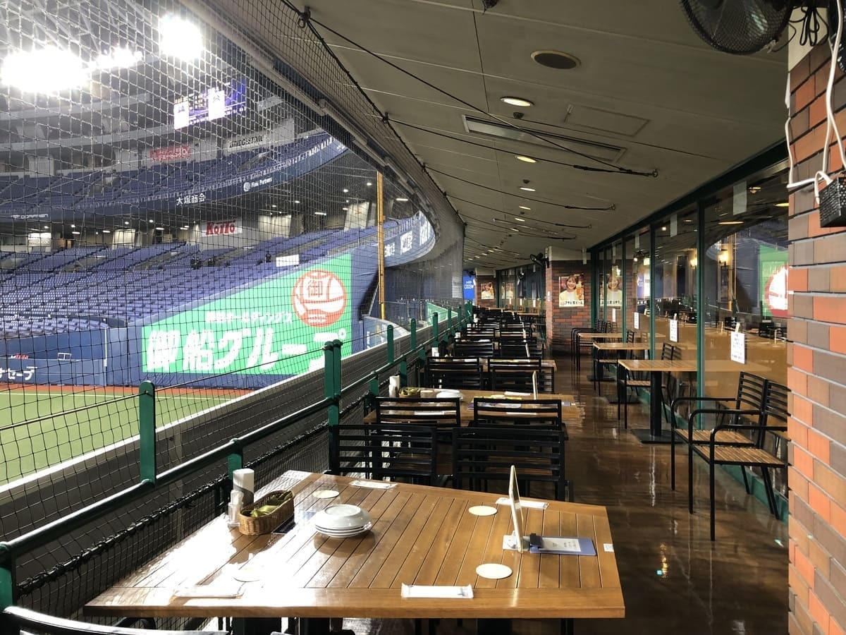 「スターダイナー」のバルコニーは、試合開始から防球ネットが外され、迫力満点で観戦をお楽しみいただけます。またご飲食は店内のお席をご利用いただけます。